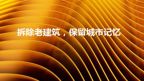 摘要:在当今城市化建设中,老建筑的拆除十分普遍。然而,这些老建筑对城市的历史和文化记忆具有重要意义。因此,如何在拆除老建筑的同时保存城市记忆,是当下需要思考的问题。作为一位化工技术专家,本文将从四个方...