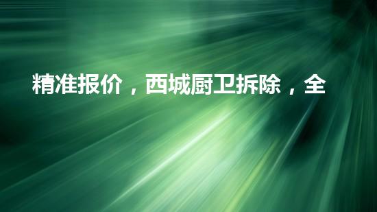 摘要:在装修过程中,拆除是一个重要的步骤,而西城厨卫拆除则是其中的一个特殊领域,需要专业的技术和经验。本文将围绕精准报价、西城厨卫拆除和全方位解决您的装修烦恼三个主题,由一位拆除行业专家进行详细的阐述...