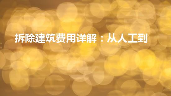 摘要:随着城市建设的不断推进,拆除建筑成为必不可少的环节之一。然而,拆除建筑费用相对较高,涉及到人工、设备、材料等多个方面,需要全面分析。本文将从专业角度出发,对拆除建筑费用从人工到设备进行全面的分析...