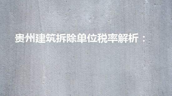 贵州建筑拆除单位税率解析:政策、适用范围与具体计算