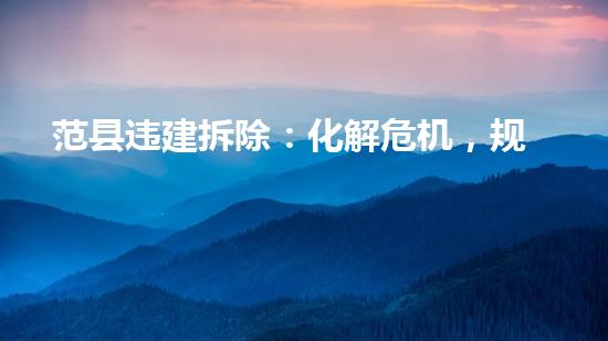 摘要:近年来,随着城市化进程的加速,违建问题愈发突出。而范县作为一个经济发展比较快的县城,也存在大量的违建问题。这些违建不仅占据了公共资源,还对环境和社会造成了巨大的破坏。为了化解范县违建危机,规范建...