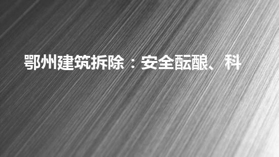 鄂州建筑拆除:安全酝酿、科技引领、环境优先