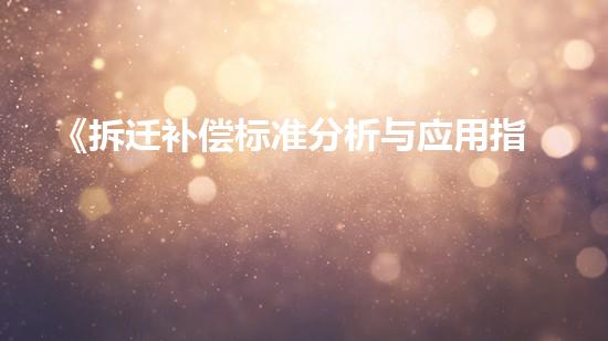 摘要:本文主要介绍了《拆迁补偿标准分析与应用指导》这本书,通过深入分析拆迁补偿标准,为读者提供了详细的应用指导和背景信息。本文旨在引起读者的兴趣,并为拆迁行业专家提供更深入的研究和应用方向。正文:1....