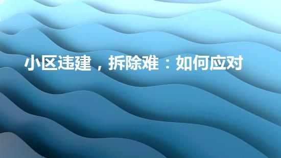 摘要:小区违建问题已经成为城市管理中不可避免的一个问题,其拆除涉及到很多复杂的法律、技术和人员方面的问题。本文从一个拆除行业专家的角度出发,分析了小区违建拆除的难点所在,并提出了应对方案。其中,主要包...