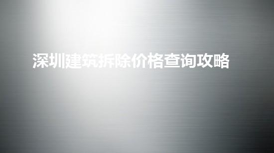 摘要:深圳市是一座经济发达,人口密集的城市,建筑拆除是城市重建的一项重要工作。建筑拆除价格查询攻略为拆除行业的相关人士提供了重要的指导。本文将从专业角度出发,详细阐述深圳建筑拆除价格查询攻略,包括行业...
