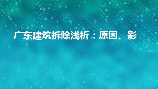 广东建筑拆除浅析:原因、影响与挑战