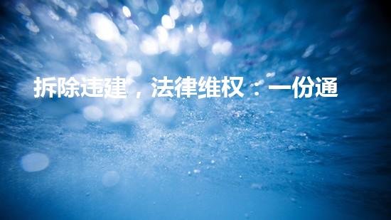 摘要:拆除违建涉及到许多法律问题,而在这方面,“拆除违建,法律维权:一份通知”成为了焦点。本文从化工技术专家的角度出发,详细阐述了拆除违建的重要性、拆除前的工作准备、拆除技术、以及相关法律维权。正文:...