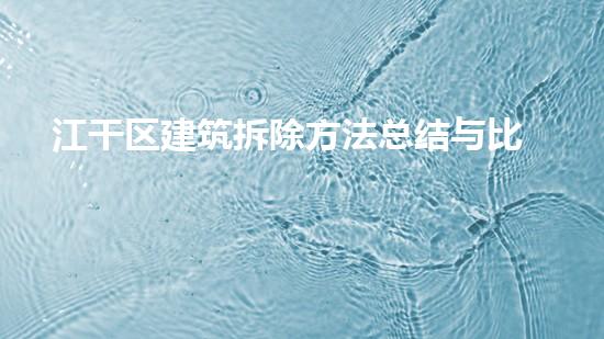 摘要:江干区是浙江省杭州市的一个重要区域,在城市发展中建筑拆除显得尤为重要。本文围绕江干区建筑拆除方法进行总结与比较,探讨了该区域在建筑拆除中的具体实践和经验,为读者提供了详细的专业知识和建议。正文中...