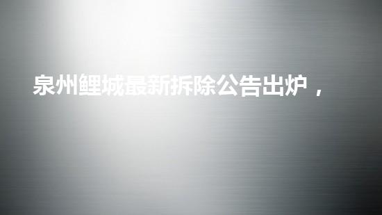 泉州鲤城最新拆除公告出炉,关注建筑拆除进展!