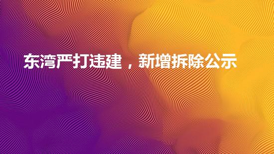 摘要:随着经济快速发展,城市里的违建问题也越来越严重。近日,东湾地区加大了对违建的打击力度,并发布了新增拆除公示。本文以拆除行业专家的身份,从四个方面对此进行详细阐述。正文:一、违建情况与影响在城市发...