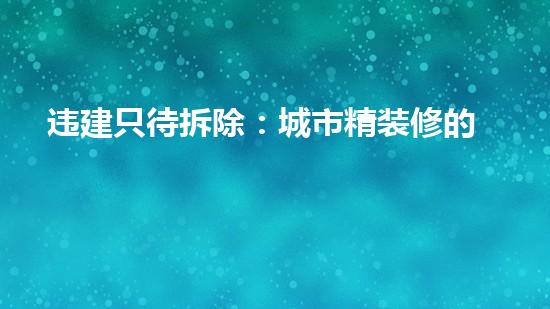 摘要:近年来,城市建设的迅速发展出现了大量的违建,这些违建除了对城市正常的建设和发展造成了影响之外,还对城市环境和市民生活带来了不可忽视的危害。这些违建只待拆除,而城市精装修成为了新的起点。本文将从以...