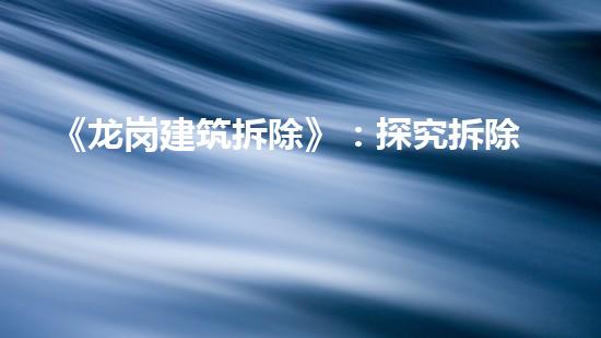 《龙岗建筑拆除》:探究拆除方案与影响