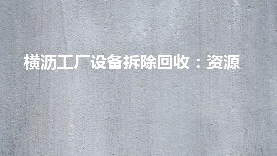 横沥工厂设备拆除回收:资源再生利用的新方案