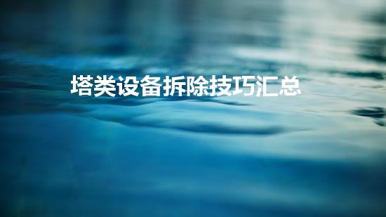 摘要:塔类设备拆除是工程拆迁中的重要一环,如何科学高效地进行拆除,减少损伤,是一个亟需解决的问题。本文介绍了从多个方面总结的塔类设备拆除技巧,包括安全防护措施、风险评估、设备拆卸流程、拆卸工具和拆卸方...