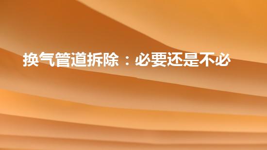 摘要:换气管道拆除,是许多建筑工程中必须面对的难题。然而,对于该问题是否必要拆除,一直存在争议。本文从多个方面深入探究了这个问题,包括环保、安全和经济等角度,阐述了换气管道拆除的必要性和不必要性,并引...