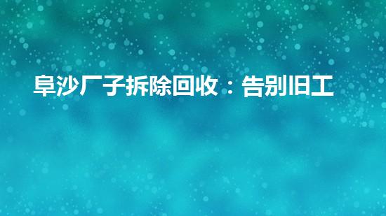 阜沙厂子拆除回收:告别旧工业,开启绿色再生新篇章