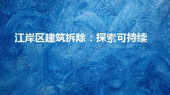 江岸区建筑拆除:探索可持续、高效的实施方案
