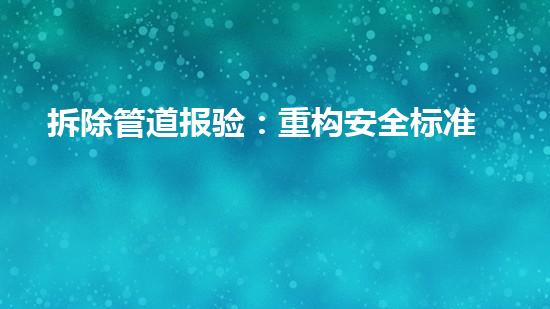 摘要:本文主要介绍拆除管道报验:重构安全标准,旨在探讨如何在管道拆除过程中重构安全标准,避免不必要的事故和损失。本文首先介绍了拆除管道的背景信息,包括管道拆除的重要性和需要注意的安全问题。接着,本文从...