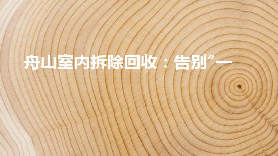 舟山室内拆除回收:告别“一拆之”,迎接绿色再生新纪元