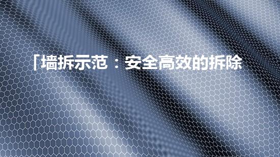 摘要:本文将介绍一种安全高效的墙拆除方法,将引出读者的兴趣,并给读者提供相关背景信息。文章主要分为4个部分,每个部分将深入阐述该墙拆除方法的不同方面,包括清洗置换、设备回收、污泥减量化、废液处理、油罐...