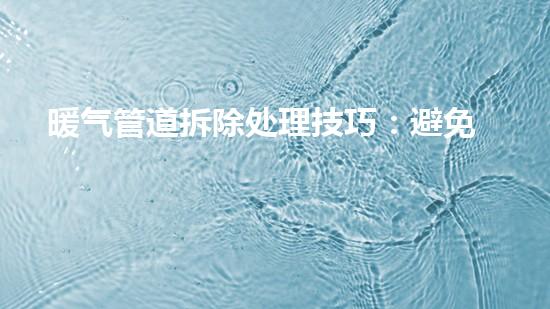 在暖气管道拆除处理过程中,避免漏水与气泡问题是非常重要的。本文介绍了暖气管道拆除处理的技巧,包括合适的工具、正确的步骤、常见的问题及其预防方法等。同时,本文还引入了巴洛仕集团化工拆除一站式解决方案和水刀不动火拆除技术应用,让读者了解到最新的拆除技术和方案。通过本文,读者可以了解到如何规范、安全、高效地进行暖气管道的拆除处理。