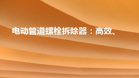 电动管道螺栓拆除器是一种高效、安全、环保的管道拆除新工具,其在化工工业、石油工业、煤化工、钢铁工业等行业有着广泛应用。本文将深入介绍电动管道螺栓拆除器的优点和应用,以及它对化工工程所做出的贡献。