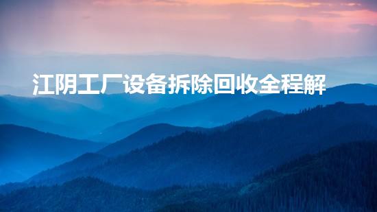 本篇文章主要介绍了江阴工厂设备拆除回收全程解析,旨在让读者了解设备拆除回收的流程和技术,引导读者了解化工行业的发展动态。
