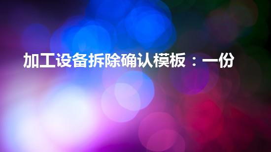 加工设备拆除确认模板:一份必备文书,是化工企业在拆除加工设备时必不可少的一份文书。它不仅仅可以保证拆除过程的顺利进行,还可以确保拆除过程的安全性和环保性。本文将从多个方面对加工设备拆除确认模板进行深入介绍,希望给读者提供有价值的信息和知识。