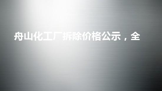 近些年来,随着环保意识深入人心,全国各地都进行了对污染严重的化工厂进行关闭或拆除的行动。而在此过程中,价格公示问题成为了产生争议的问题之一。而近日,舟山市委书记主持会议并宣布,舟山化工厂的拆除价格将全面公开透明,让公众了解真相。本文将从价格公示的意义、价格公示标准以及价格公示的实施效果等方面,深入探讨舟山化工厂拆除价格公示的意义。