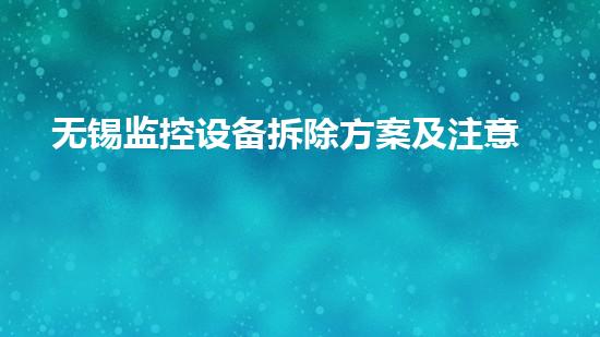 无锡市因为城市发展需要和公共治理的需要逐渐建设了许多的监控设备,然而在这些设备使用过程中也面临了维护、升级和拆除的问题。本文将从多个方面介绍无锡监控设备拆除方案及注意事项,旨在为相关工作提供帮助和参考。