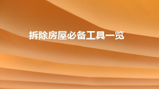 拆除房屋是一项复杂的工程,在完成这项工程中必须使用一些拆除房屋必备工具。这些工具不仅可以帮助拆迁人员高效、安全地拆除房屋,还可以保证环保法规的合规性。本文将针对拆除房屋必备工具一览进行深入的介绍和分析,从多个方面探究这些工具的使用方法及作用。