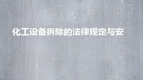 化工设备拆除是一项非常危险的工作,因此,在这项工作中必须遵守一定的法律规定和安全措施。本文主要从四个方面详细介绍了化工设备拆除的法律规定和安全措施,包括安全方案编制与审核、施工方案编制与审核、拆除工作的组织与实施以及拆除工作中的安全措施。通过本文对这些方面的分析,读者可以更好地了解化工设备拆除的法律规定和安全措施,以保护工人的安全和设备的完好性。