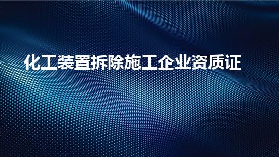 化工装置拆除施工企业资质证书是指由国家有关部门颁发,并经审核合格的化工装置拆除施工企业,证明该企业符合国家有关法律、法规和技术标准规定的标志。证书是企业参加化工装置拆除施工的必要条件,具有法律效应。