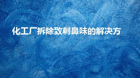 化工厂拆除是一个具有挑战性的任务,需要解决许多问题,其中一个主要问题是臭气扰民。本文介绍了化工厂拆除致刺鼻味的解决方法和技巧。我们将从四个方面对此进行分析:化学氧化、高效吸附、物理遮蔽和生物降解。巴洛仕集团化工拆除一站式解决方案,水刀不动火拆除技术应用,油罐拆除,化工厂拆除,设备回收,危废处理,土壤修复,巴洛仕专注化工不动火拆除技术研究与应用。我们旨在为读者提供背景信息、详细解释主题、陈述观点、提供支持和证据,并引用其他人的研究和观点。