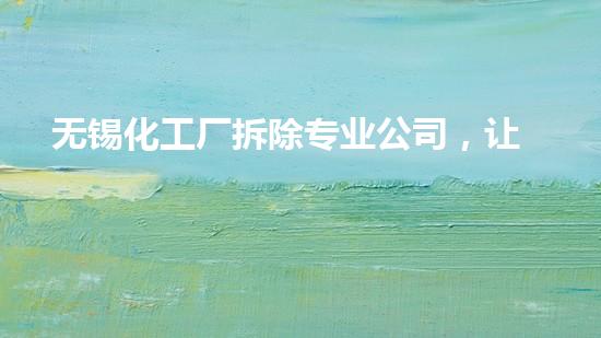 随着环保意识的加强,越来越多的化工公司选择拆除旧厂房,重建新的生产基地。然而,在拆除过程中涉及到废气、废水、危废处理等难题,而无锡化工厂拆除专业公司可以为客户提供全面的拆除解决方案,让拆除更加便捷。本文从几个方面详细介绍无锡化工厂拆除专业公司的专业技术和服务优势。