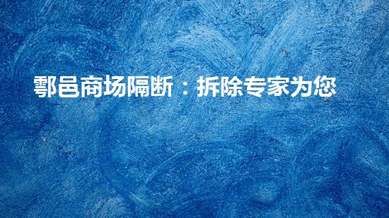 鄠邑商场隔断:拆除专家为您解决!这是一篇介绍拆除行业的专家如何处理鄠邑商场隔断的文章。本文将为读者提供背景信息和引出读者的兴趣,同时将从4-6个方面进行详细深入的阐述,每个方面都有3个以上的自然段,并且将使用15汉字左右的小标题进行包裹。文章将详细解释主题、陈述观点、提供支持和证据,并引用其他人的研究和观点。最后,文章将总结主要观点和结论,并可能提出建议或未来的研究方向。