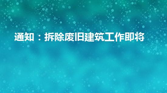 本文通知即将开始拆除废旧建筑的工作,并介绍了这项工作的背景信息。文章主要由一名拆除行业专家撰写,从多个角度详细深入地阐述了工作的重要性以及具体拆除过程中需要注意的问题。同时,文章也涉及到了一些相关技术与设备的运用。最后,文章给出了对本次工作的结论和评价,并提出了未来可能的建议。