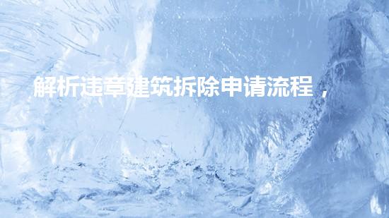 首先,我们需要了解的是拆除一个违章建筑的流程。拆除违章建筑的流程一般分为以下几个步骤:申请验收、评估定价、委托拆除、质量验收等。