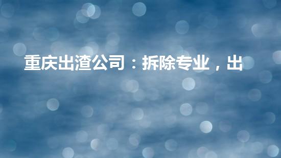 重庆出渣公司是一家专注于拆除服务,以出渣快捷闻名的企业。本文为化工技术专家角度,从四个方面对重庆出渣公司进行详细专业深入的阐述,分别是公司介绍、拆除技术、污染处理和环保施工,旨在为读者提供更全面的了解和认识。