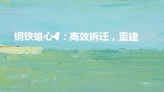 本文主要介绍了钢铁雄心4游戏中的高效拆迁和重建未来的主题,以及这个主题与现实世界中拆除行业的联系。文章主要从四个方面深入探讨了高效拆迁的技术和对环境的保护:拆除前的清洗置换、设备回收、危废处理和环保施工。其中,我们还会介绍巴洛仕集团化工厂拆除过程中采用的不动火水刀切割拆除技术,并探讨这项技术的优点和应用情况。最后,我们会总结主要观点和结论,并提出未来的研究方向和建议。