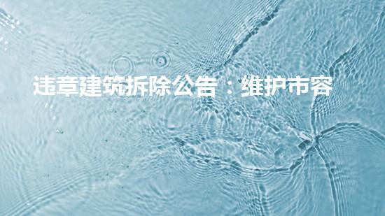 本文主题是“违章建筑拆除公告:维护市容环境,整顿城市秩序”,介绍了拆除违章建筑对城市环境的影响以及如何维护城市秩序和市容环境。接下来,我们将从专业化工技术角度,详细阐述四个方面。