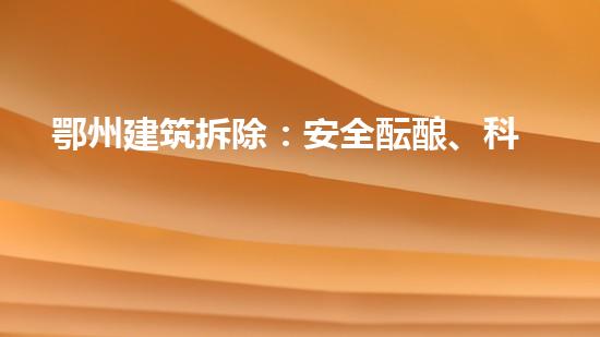 鄂州建筑拆除:安全酝酿、科技引领、环境优先,这是一个非常复杂的过程,但通过上述措施和方法的应用,我们可以确保拆除过程的安全、环保和高效。此外,未来我们还应该进一步探索新技术和新方法,继续保持领先的地位。