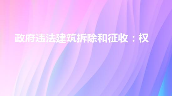 政府违法建筑拆除和征收的权利与责任是一个非常复杂的问题,需要涉及到很多方面,包括拆除前的清洗置换、设备回收、污泥减量化、废液处理、油罐拆除、危废处理、环保施工等。针对不同的拆除对象,需要制定不同的方案和措施,以确保拆除工作的顺利进行。