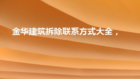 通过本文的介绍,我们可以掌握到关于金华建筑拆除的联系方式大全,快速了解拆除工作中的关键点。在未来的拆除工作中,需要针对不同的情况选择合适的拆除技术和方法,同时配合环保主旨,采取相应的措施,确保拆除工作的顺利和安全执行。