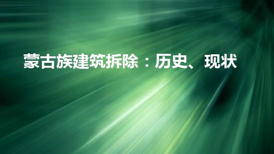 本文从专业的角度深入探讨了蒙古族建筑拆除的问题,介绍了历史背景、现状分析、拆除方法和未来展望。通过本文,读者可以了解到蒙古族建筑拆除的背景和原因,以及保护文化遗产的重要性。同时,读者还能够了解到最新的拆除技术和工艺,并了解到拆除行业专家的观点和论据。最终,本文希望能够引起更多人对蒙古族建筑文化的关注和保护。