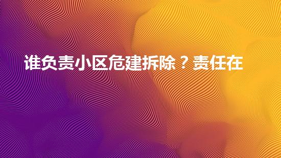 负责小区危建拆除的责任应该在房屋主人或物业公司,但同时,政府也有责任对小区危建进行监管。在小区内拆除危险建筑时,涉及到许多工作,例如前期规划、确定施工方案、危废处理等,如果发生安全事故,责任难辨。因此,小区危建拆除的责任应该由政府和房屋主人或物业公司共同承担。