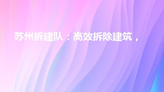 苏州拆建队是一支专门从事建筑拆除工作的队伍,以高效拆除建筑、安全掌控工程为中心,为客户提供全方位的拆除服务。本文将从专业的角度出发,对苏州拆建队的高效、安全、环保等方面进行深入剖析。