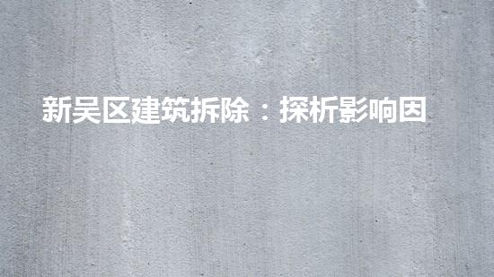 新吴区是江苏省徐州市下辖的一个区,因近年来的城市发展和城市规划,拆迁和建设工程逐渐增多,其中建筑拆除成为重要的课题之一。本文以新吴区建筑拆除为背景,探析拆除影响因素及可持续发展策略,为读者提供深入专业的阐述。