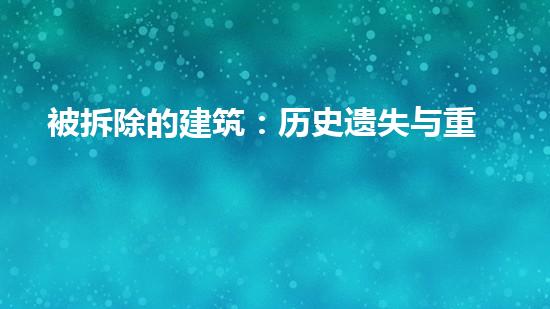 被拆除的建筑不仅是历史的遗失,也是新生的机会。在拆除过程中,应该遵循环保、安全、技术、经济等原则,采用适当的拆除技术,达到节约资源和保护环境的目的。同时,应该注意历史文化的保护,尽可能地保留有价值的建筑物。