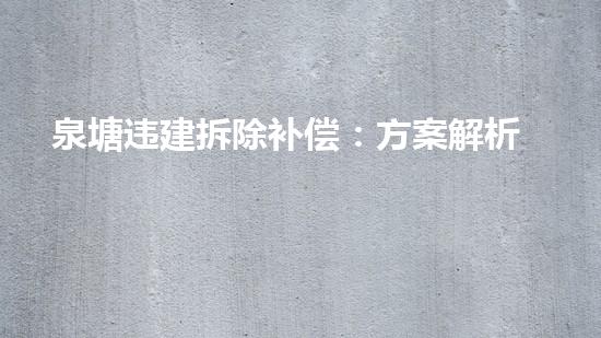 随着城市化的快速发展,违建问题也日益凸显。泉塘地区是中国南方一个典型的城市群,也是违建问题最为突出的地区之一。针对泉塘地区的违建拆除,需要在制定科学的补偿方案的同时,充分考虑到环保、市政建设和长远的社会效益。本文作者是化工技术专家,将从多个方面对泉塘违建拆除补偿方案进行深入分析和思考,并提出解决方案。